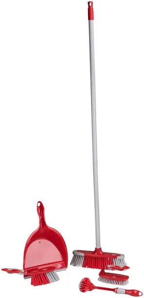 6-częściowy zestaw do sprzątania Dirt Devil to niezwykle kompletny zestaw do sprzątania zarówno w pomieszczeniach, jak i na zewnątrz. Zestaw zawiera miotłę, miotełkę ręczną i szufelkę, szczotkę do szorowania i szczotkę do mycia naczyń. Zapewnia to najlepsze narzędzie do czyszczenia niemal każdego pomieszczenia. Wszystkie szczotki mają antypoślizgowy uchwyt, więc nawet w połączeniu z wodą i detergentem nie wyślizgną się łatwo z dłoni.
